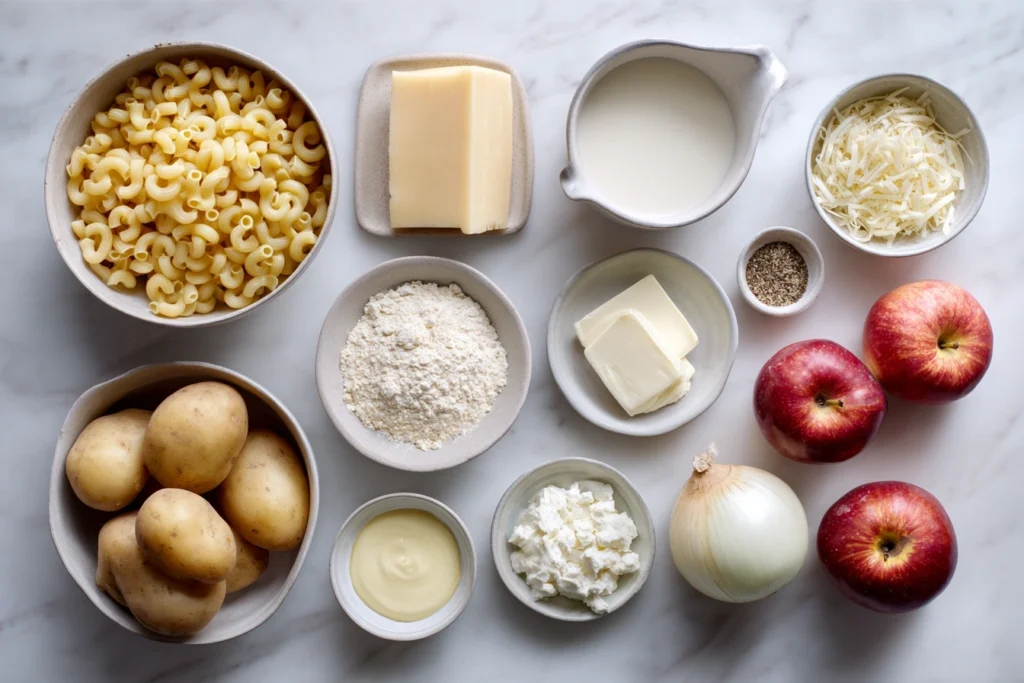 What makes apples macaroni unique is the combination of creamy pasta and potatoes served with apple sauce. While it may sound unusual at first, the contrast between savory cheese and sweet apples is what defines this dish. The apples help balance the creaminess and prevent the meal from feeling too heavy.